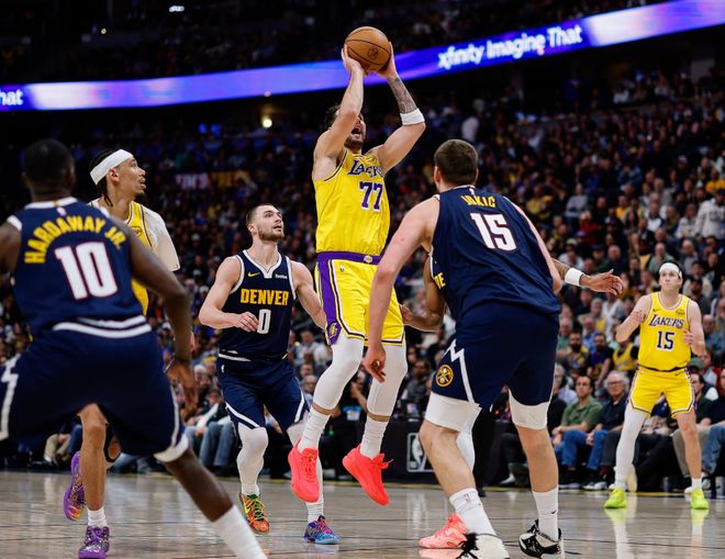 湖人其實反而不用多說什么,三巨頭紙面戰力是場均77分,算上助攻,場均90多分的產量,但是球隊就形成了“兩個和尚(東契奇+里夫斯)挑水吃,三個和尚沒水吃(東契奇+里夫斯+詹姆斯)。任何帶上詹姆斯的陣容組合,湖人鐵定輸分,從對陣聯盟前十的球隊比賽戰績就能看出這一點,三巨頭陣容太畸形,不如讓老詹休息。此外湖人內線不堪一擊,或者說湖人就沒有內線防守可言。
