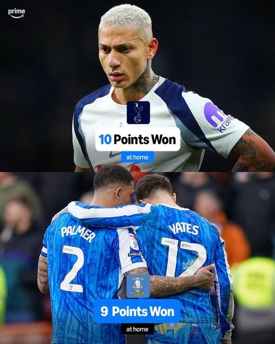 根據統計,本賽季到目前為止,熱刺在英超主場比賽中只拿到了10個積分,在英格蘭前四級別聯賽的92支球隊中,只有謝周三的主場積分(9分)比熱刺少。
