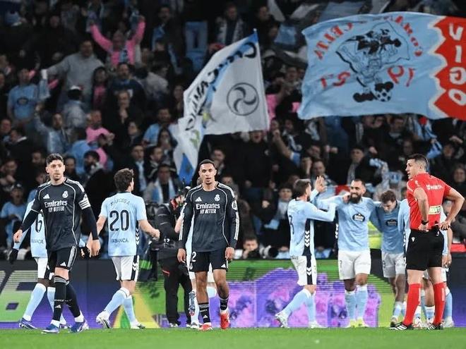 此役,皇馬有一個美妙開局。開場11分鐘,居萊爾就助攻瓊阿梅尼完成破門,皇馬客場1-0先聲奪人。失球之后,塞爾塔開始改變戰術,頻繁通過長傳打皇馬身后。第25分鐘,明格薩后場大腳長傳將球打到身后,斯韋德貝里面對阿諾德的追防依然從容完成傳中,博爾哈-伊格萊西亞斯破門扳平比分,而前太子的防守也遭到了多位電臺解說的質疑。
